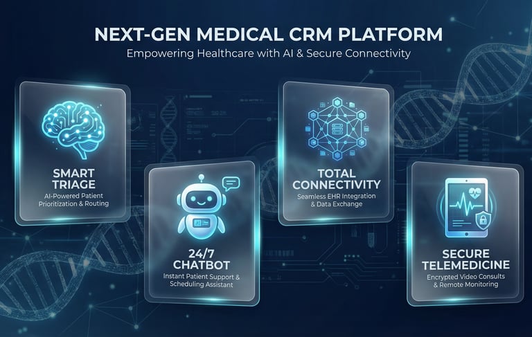 La inteligencia operativa que tu Clínica u Hospital necesita para evolucionar. Centraliza la gestión clínica, automatiza flujos administrativos y mejora la experiencia del paciente con el CRM diseñado por expertos en tecnología médica. De los datos a las decisiones, en una sola plataforma.